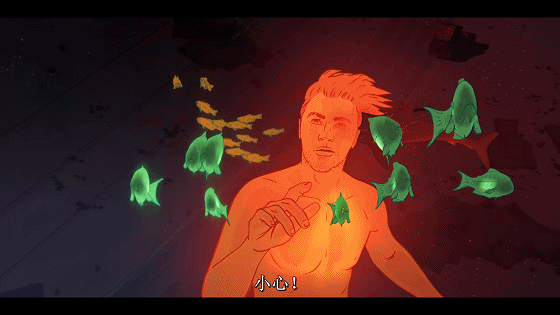 5、最后年轻人被古鱼吞食了;老年人只能在一旁呆望。